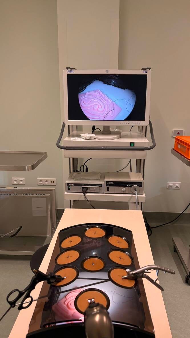 Verder nam ik een dag verlof om een uitzonderlijke operatie in het UZA te kunnen volgen. Prof. Komen en prof. Thiessen voerden hierbij een perineaal herniaherstel uit, volledig met behulp van de robot. Momenteel werk ik aan een ingesproken video om deze vernieuwende chirurgische techniek te documenteren en zo bij te dragen aan het wereldwijd delen van kennis en ervaring.